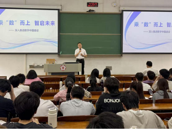 周建强以《乘“数”而上 智启未来》为题,从“数字中国建设”切入,系统梳理了数字中国从概念提出上升到国家重大战略的演进脉络,全方位展现了我国数字建设的壮阔征程与卓越成就。他指出,数字技术正重塑全球竞争格局,已然成为国家未来发展的核心制高点。结合土木行业智能化、绿色化转型的迫切需求,周建强深入阐释数字中国战略的丰富内涵与实践要求,号召同学们积极顺应数字时代大势,全面提升数字素养与创新能力,主动投身于数字技术创新、产业升级与民生服务的实践中,以青春智慧赋能数字中国建设。